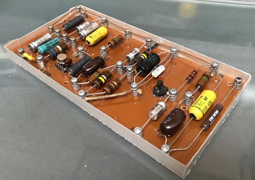 2017 / 04 / 24 ( Mon ) 【私、脱いだらスゴイんです。】 第8弾は・・・遂にラスボスの登場です! (i|!゜Д゚i|!)ヒィィィ いかがですか奥さん? センス溢れるスタイリッシュなこのフォルム! NASAの最新技術の粋を集めた 「幸福が訪れるかもしれない炊飯器」です。 今なら 「どんな不幸も洗い流せる気がする洗剤」付き!! ウソです。 ギター用のブースター(オーバードライブ)です。 3種類の自作オーバードライブを1つの筐体に収めてあります。 左から ハムバッカー用(その1)、ハムバッカーとシングル共用(その2)、シングル用(その3) で使い分けてます。 今はギターからアンプ直でエフェクターは一切使ってないんですが、Marshall Plexi Clone や JC-160などのアンプでブースターが必要になるので手放せません。 全ての部品一箇所ずつ何度も部品を変えて音を比べて選び、その度基板レイアウトを何度も書き換えて、試作基板も数回作ってはやり直し 2年以上かけてやっと1枚の基板完成 というアホなことしてました。 「その1」での経験から「その2」、「その3」はあっという間に完成しました。 エフェクターとして必要な耐圧より異常に高いものばかりですが、好みの音になるメーカーでその値の物はその耐圧しかなかったってのが理由です。 ソルダーレスのハンドワイヤリングによるポイントトゥポイントですが、 ソルダーレスにしたのは頻繁に起きるであろう故障時のメンテナンス性を重視したため で、音質的なこだわりはありません。 こんな代物ですので定期的に調子が悪くなったりして、その都度応急処置を繰り返して来たんですが、これ以上その場しのぎはヤバそうなので、 そろそろレストア(?)しないとマズイところまで来てしまいました。 このブースターやフェイスブックのトップのカバー写真にしてるMarshall 1987XのPLEXI COLNE 2号さんを作ってた頃は楽しくてしょうがなかったんですが・・・ 今はただメンドクサイんです!! でも、 替えの効かないという意味では私にとってギターやアンプよりもこのブースターの方が大切なので頑張ります!! *:・'゚☆。.:*:・'゚★。.:*:・'゚☆。.:*:・'゚★。.:*:・'゚☆。.:*:・'゚★。.:*:・'゚☆。.:*:・'゚★。.:*:・'゚☆。.:*:・'゚★ 当初はもう1種類ブースターを作って同居させるはずだったんで、その分無駄な穴があったり、ダーミーなスイッチが付いてたりしてます。 なので どうせだから新しい筐体に移し替えましょう。 因みに左の「その1」は故障してるんでまず修理しときます。 症状から抵抗が逝ってると思うので、その辺から探してみます。 作業開始
